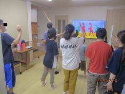 猛暑日が続いているため、散歩などの屋外活動が難しい日は、室内でリズム体操などの軽い運動を行っています。暑さを避けながら体を動かすことで、利用者の皆さまも安心して参加でき、心身のリフレッシュにつながっているご様子でした。
